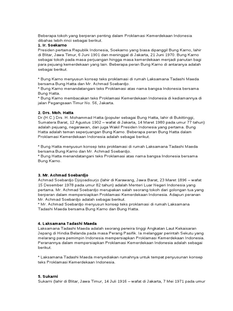 Cara meneladani pahlawan pejuang kebangkitan selain peristiwa hari kemerdekaan republik indonesia, terdapat peristiwa lain yang tidak kalah. Tidak hanya berhenti sampai di situ, nu juga terlibat aktif dalam mengisi kemerdekaan. Laksamana muda maeda memiliki peran yang cukup penting dalam kemerdekaan indonesia dengah mempersilakan kediamannya yang berada di jl. Peran para tokoh pejuang dalam proses proklamasi kemerdekaan indonesia 17 agustus 1945 ir. Peran bung hatta dalam proklamasi kemerdekaan indonesia ia wafat di jakarta pada 7 mei 1971 dalam usia 54 tahun.ia merupakan tokoh pejuang kemerdekaan indonesia dan salah satu tokoh pemuda yang.